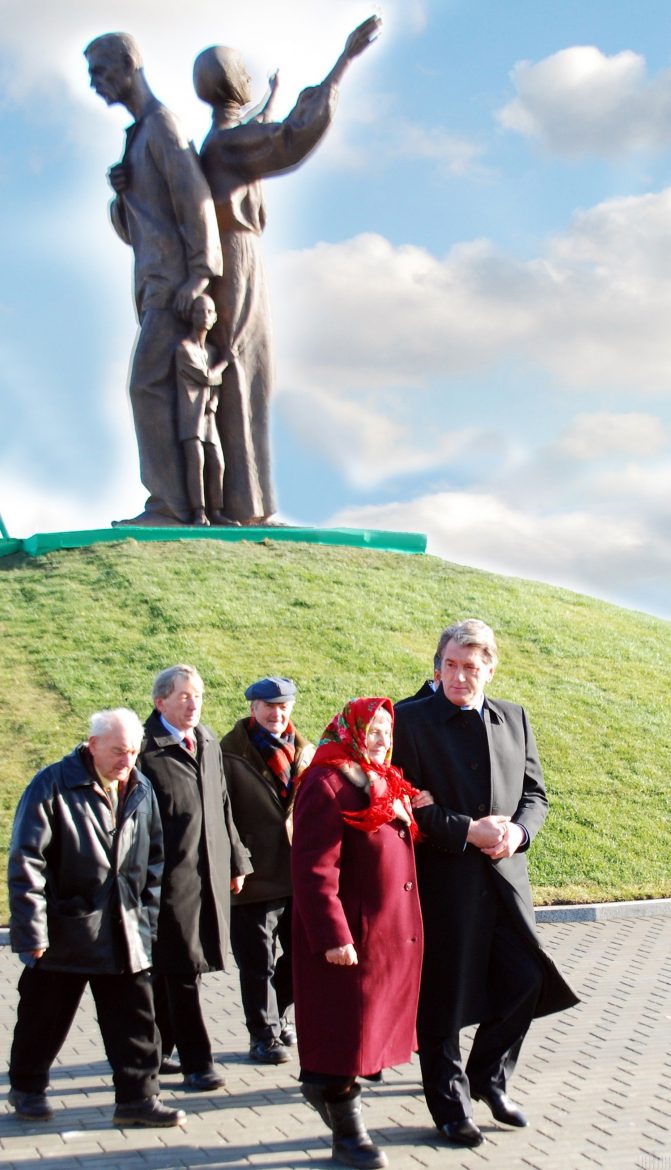 Раптом під’їжджає машина. Хтось вигукує: «Хлопці, терміново треба двадцятьох людей!» — і люди біжать, не розуміючи навіщо й куди. З машини виносять дерев’яний хрест. Тільки тоді їм кажуть, що це хрест пам’яті жертв Голодомору. Запрошений зі Львова священник править панахиду. Обабіч стоїть міліція, мовчки за всім спостерігаючи.