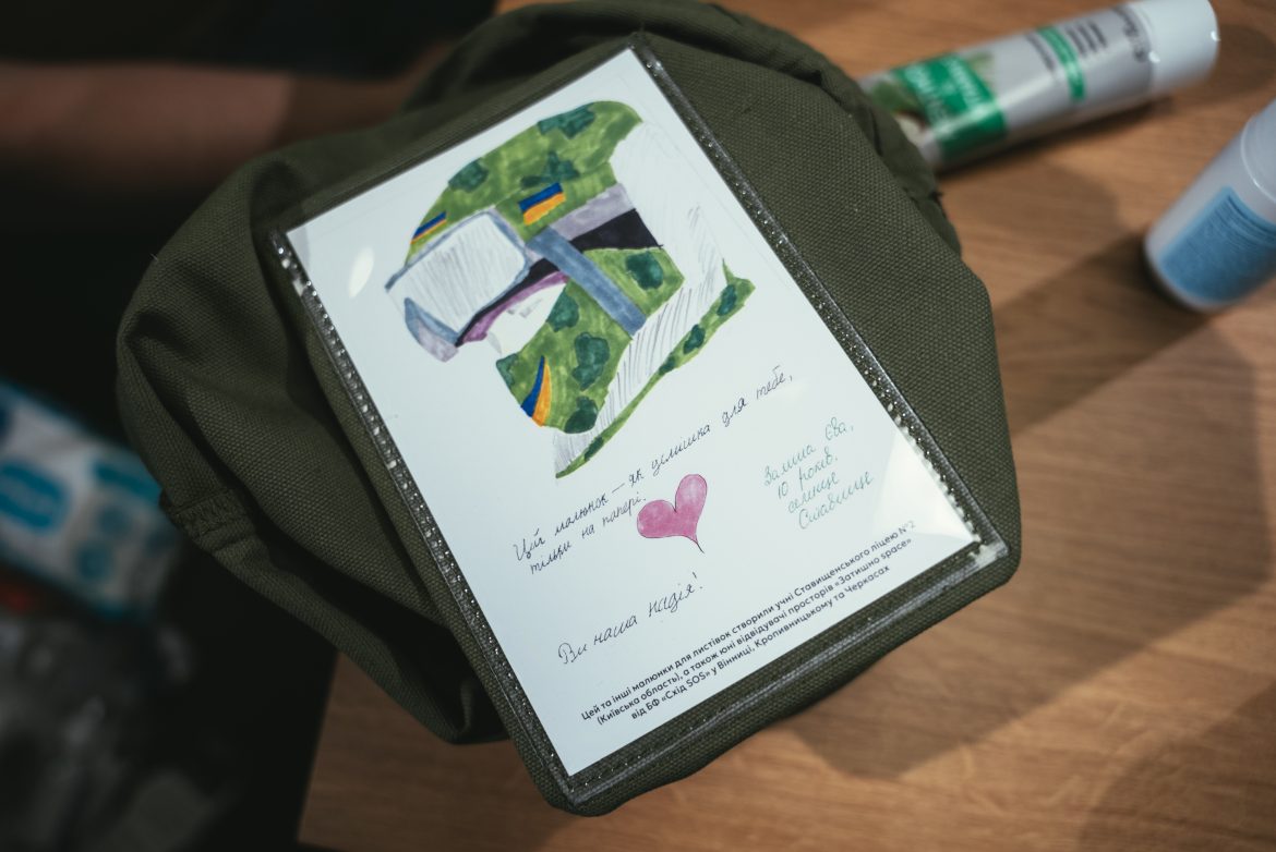 «На внутрішній частині є листівки з позитивними написами: “Дякую за твою силу”. Іноді це мотиваційні фрази або дитячі малюнки, які вставляють усередину цього мішечка», — розповів Курінний.